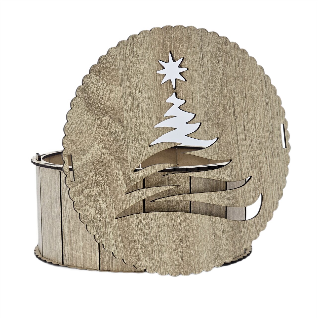 Cutie HDF - rotunda cu bradut 20 cm, natur.