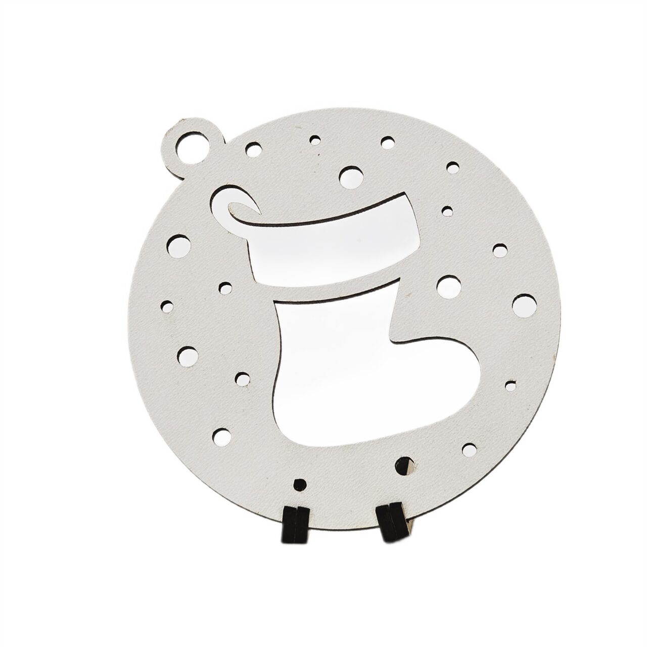 Decoratiune Craciun HDF- ornament mare, 9 cm, alb, 6/set, Cizmulita.