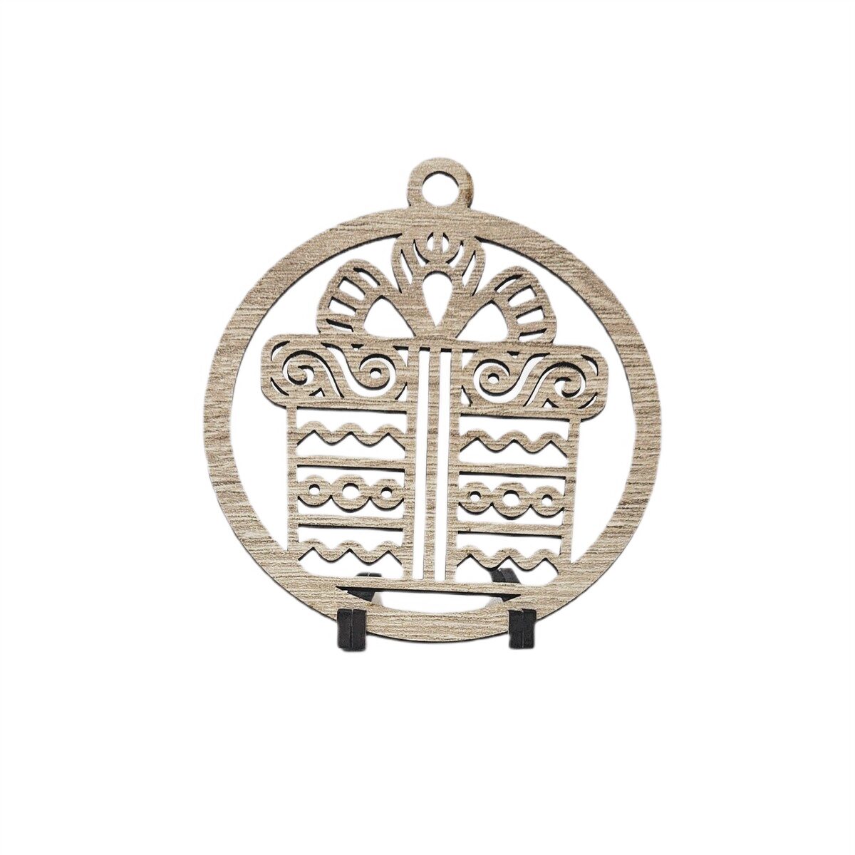 Decoratiune Craciun HDF- ornament mare, 9 cm, natur, 6/set, Cadou.