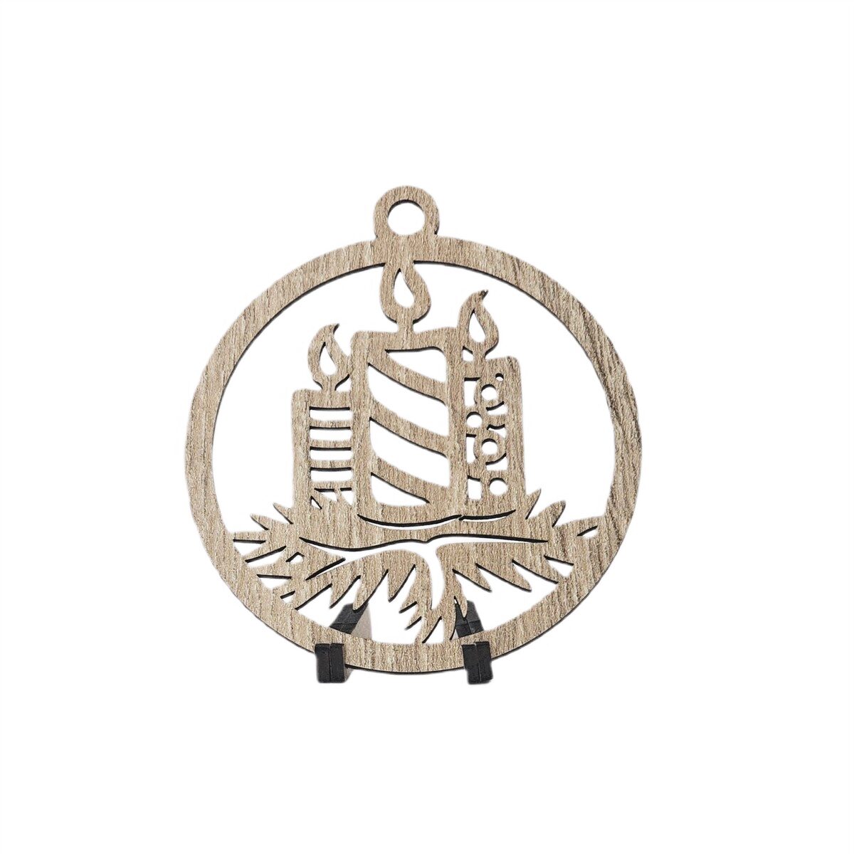 Decoratiune Craciun HDF- ornament mare, 9 cm, natur, 6/set, Lumanare, DW27062