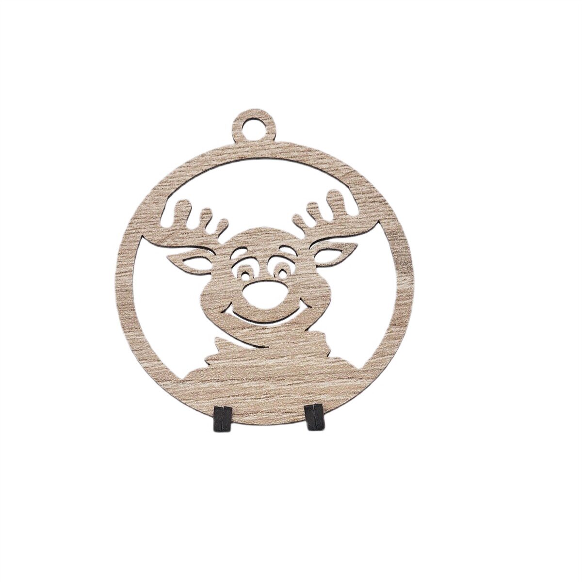 Decoratiune Craciun HDF- ornament mare, 9 cm, natur, 6/set, Ren, DW27055