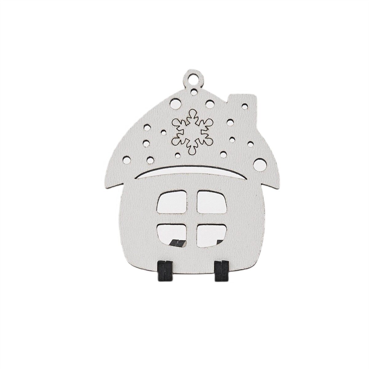 Decoratiune Craciun HDF- ornament mediu, 6-8 cm, alb, 6/set, Casuta, DW27031