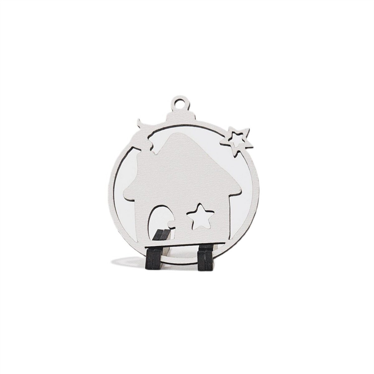 Decoratiune Craciun HDF- ornament mic, 6 cm, alb, 6/set, Casuta.