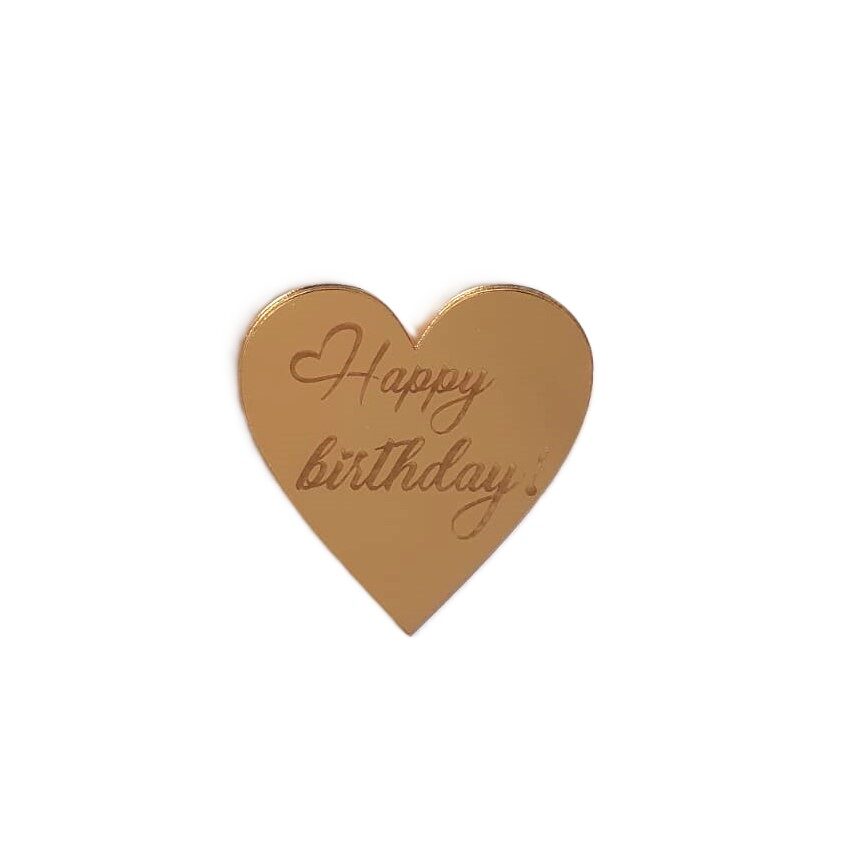 Topper PLEXI - Inimioara "Happy Birthday" 6 cm, auriu, DW24156